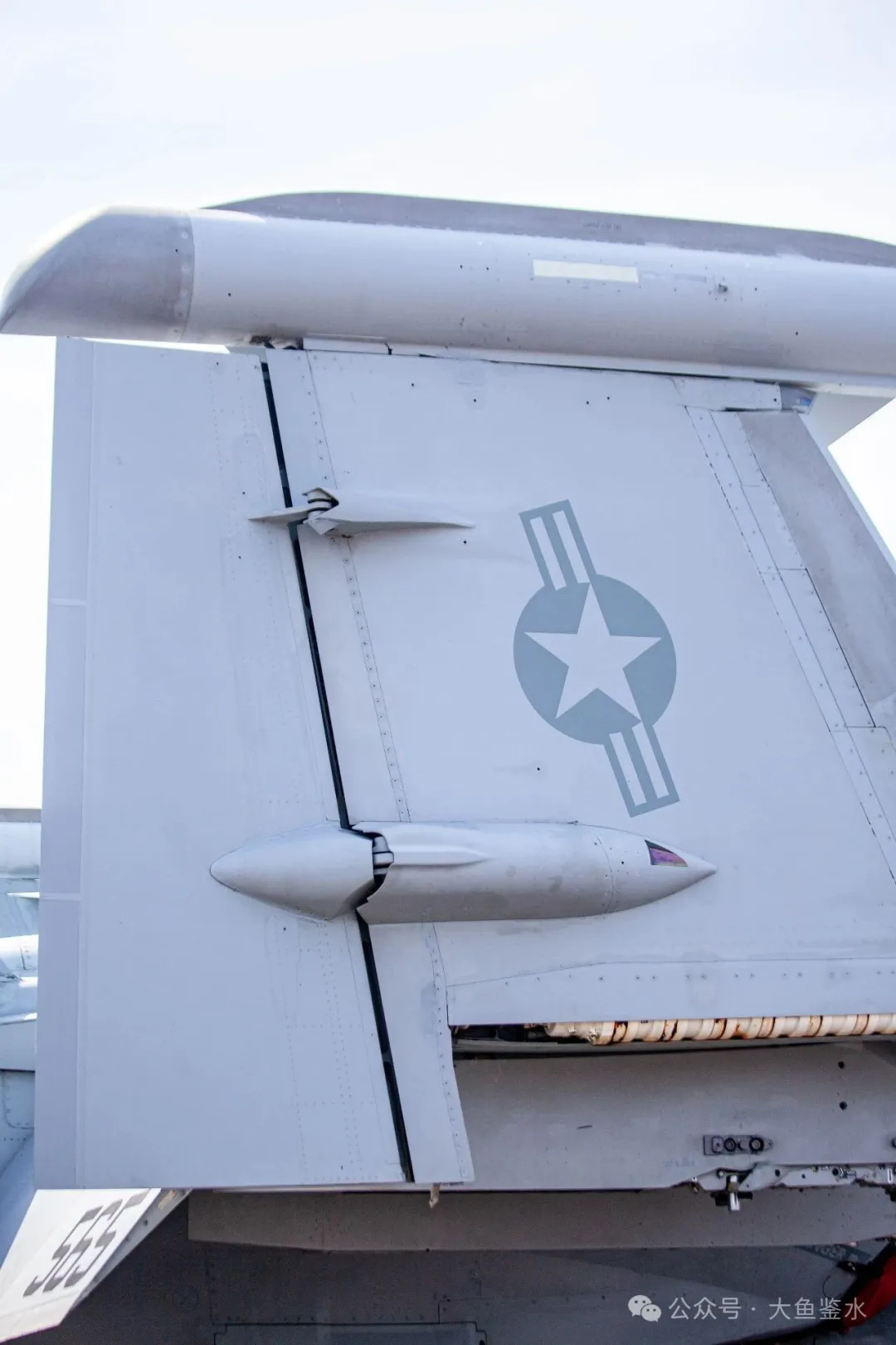 > 座艙前面的5個長條是敵我識別系統天線,雷達罩根部是機炮口和兩側的排煙口,F/A-18E/F/G上被封裝在一個方盒子裏。
