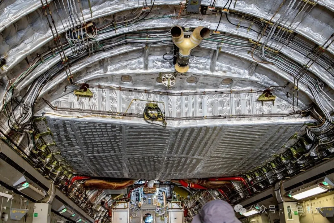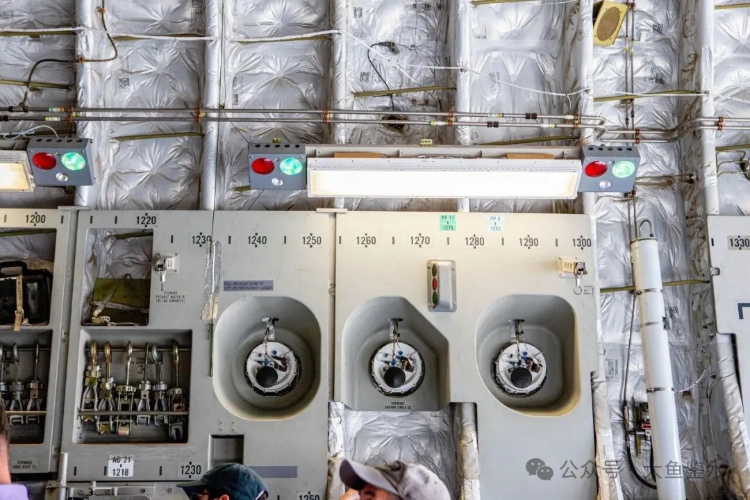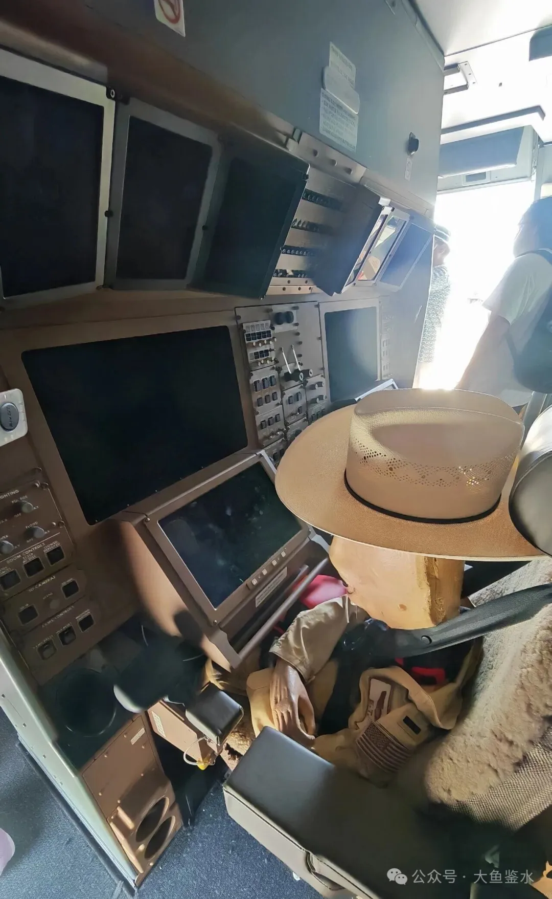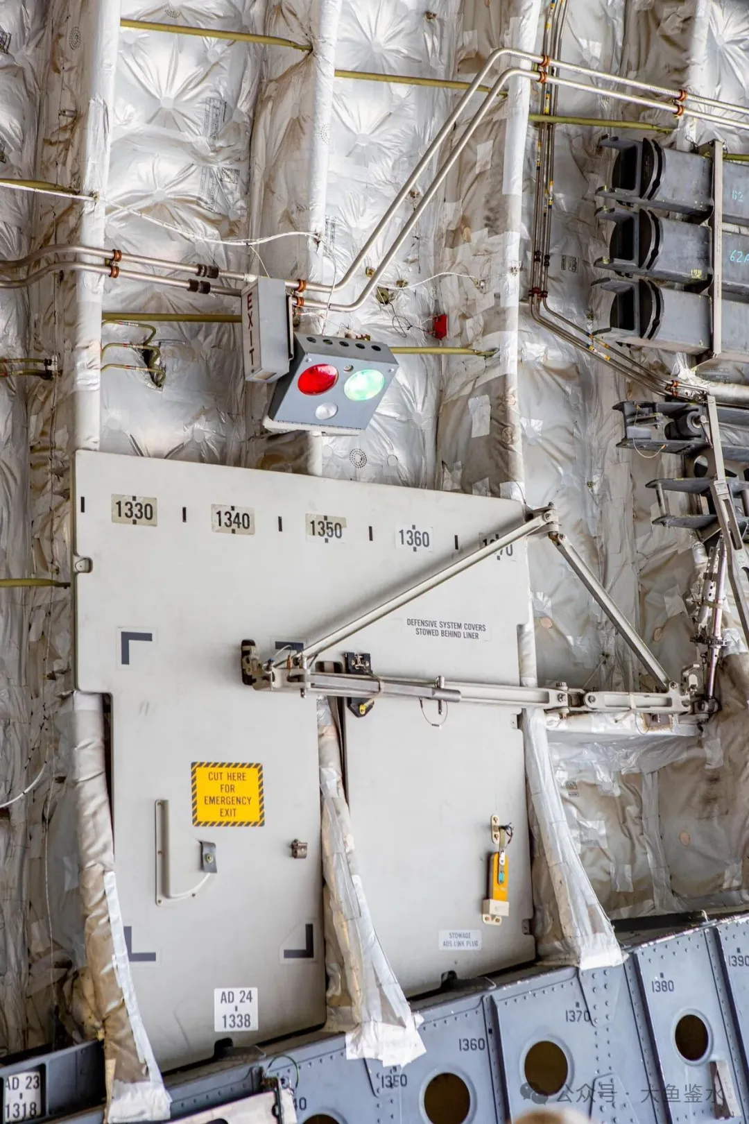 轉過牀鋪本以為就是艙門空間準備下機了,轉頭一看赫然發現背後就是那個武裝到牙齒的先進空中加油操作站。之前看到的資料圖操作站以外的區域都被故意塗黑或者切掉,不清楚它在機艙內的具體位置和朝向,這下真相大白了,就位於駕駛艙後面的前艙門旁,面對機尾。左側座席上還放了個假人。