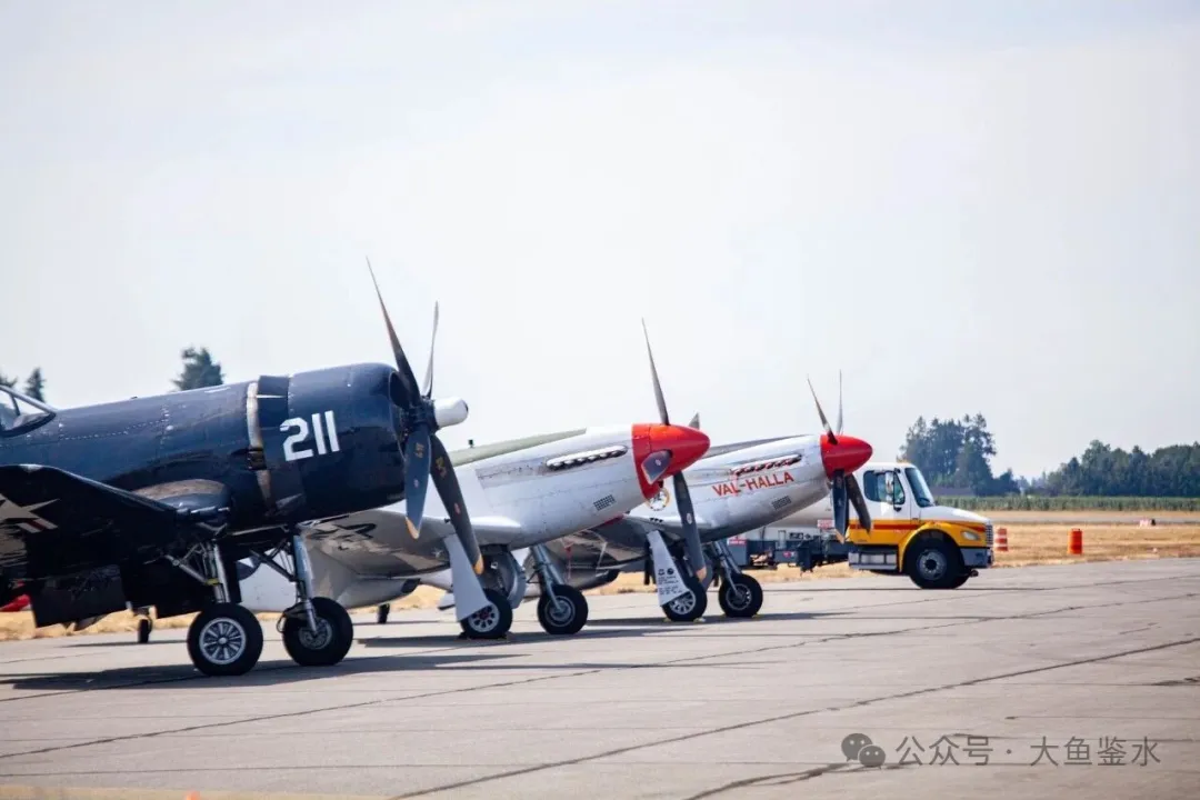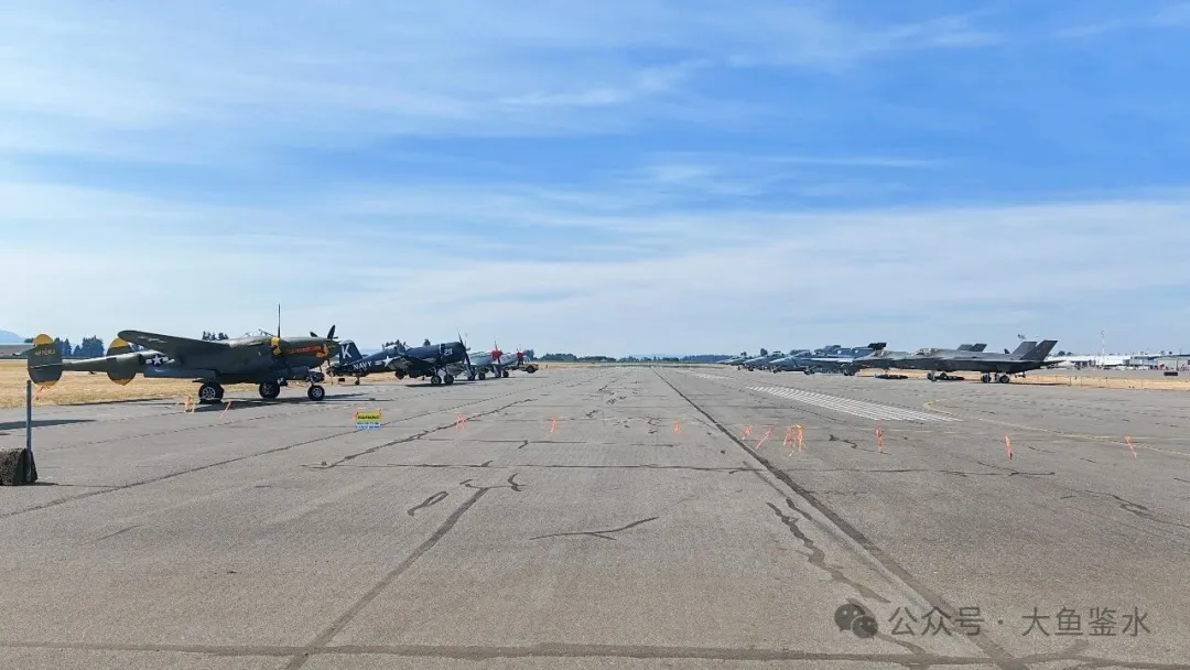 在靜展區的盡頭是飛行表演機停機坪,不能入內。左邊一排是二戰老飛機,包括P-38、F4U和兩架P-51。