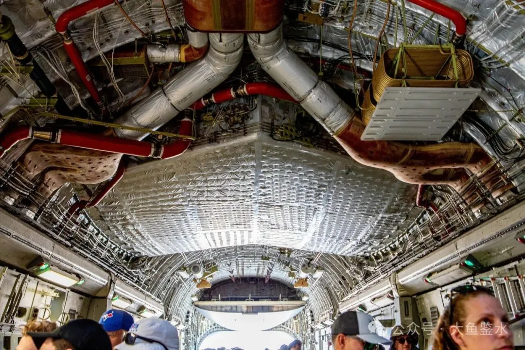 KC-46A開放了貨艙參觀,從後部進前部出,地板上安裝了滑輪和導軌用於快速裝卸,機艙空蕩蕩的並沒什麼看頭。