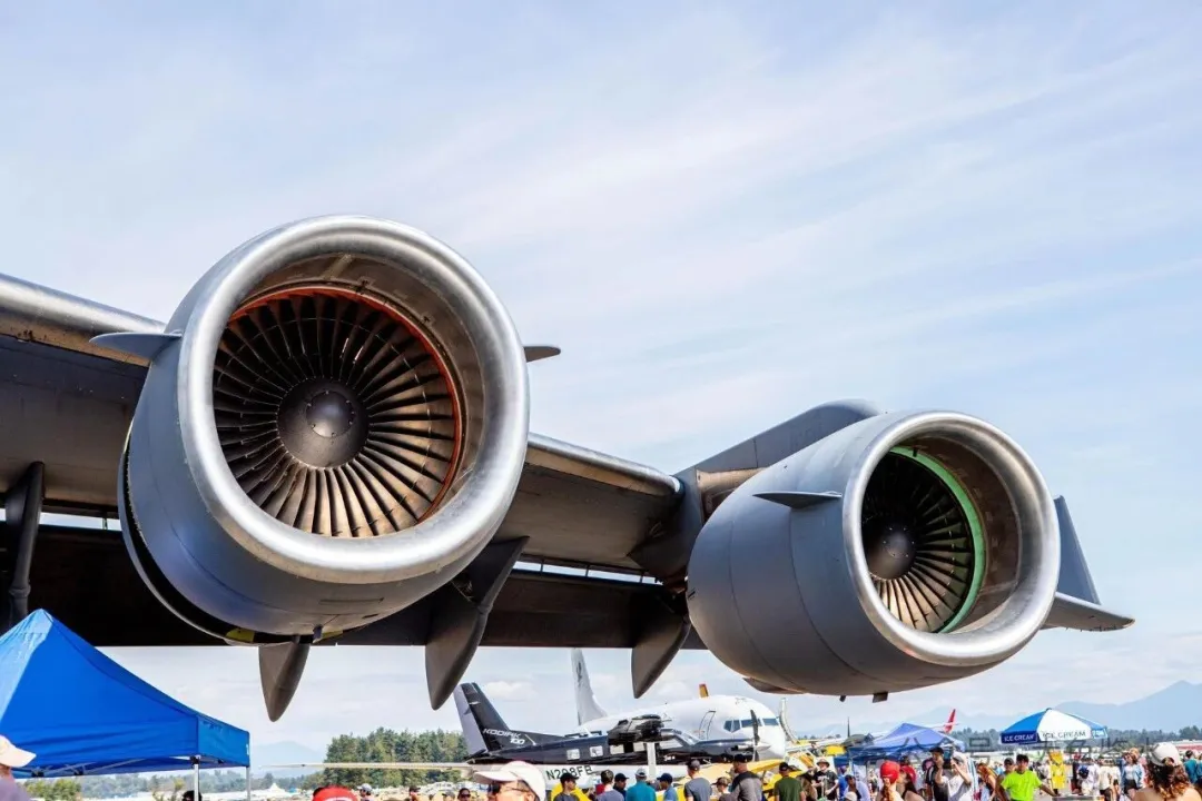 C-5M也是航展常客了,機體太大,我甚至都沒給它拍一張全身像。換裝F138-GE-100渦扇發動機的C-5M共52架,提供了美國空軍21%的戰略空運能力。新發動機提高了可靠性,推力增加22%,起飛距離縮短30%,爬升率提高58%,載貨量和航程都有所增加。這些由C-5B/C改裝而來的“超級銀河”將至少服役到2040年,屆時其機體壽命將超過50年。
