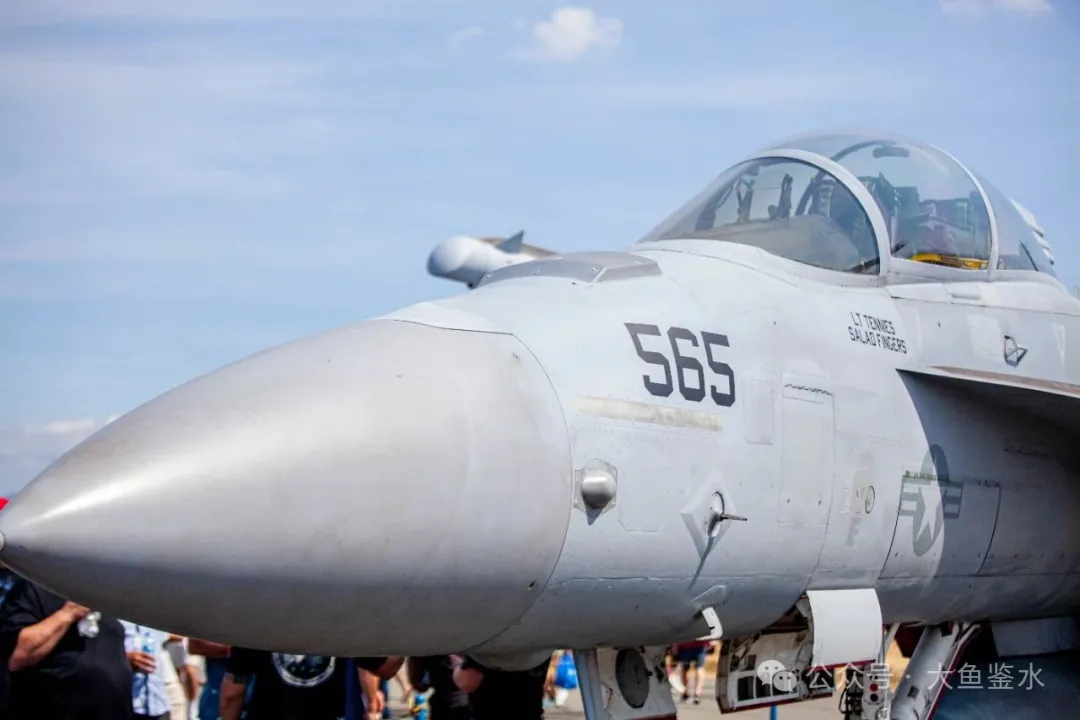 第一次在航展上見到EA-18G真機,之前只在惠特貝島海軍航空站旁邊見過天上飛的。NJ-565號機來自VAQ-129“維京”中隊,這是美國海軍唯一的一個EA-18G艦隊轉換中隊(尾號NJ代表太平洋艦隊的艦隊轉換中隊),負責全軍的EA-18G空勤培訓和標準作戰/維護流程開發,沒有配屬給航母。