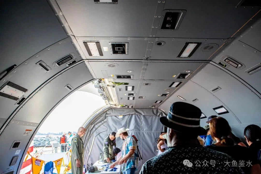 KC-46A開放了貨艙參觀,從後部進前部出,地板上安裝了滑輪和導軌用於快速裝卸,機艙空蕩蕩的並沒什麼看頭。