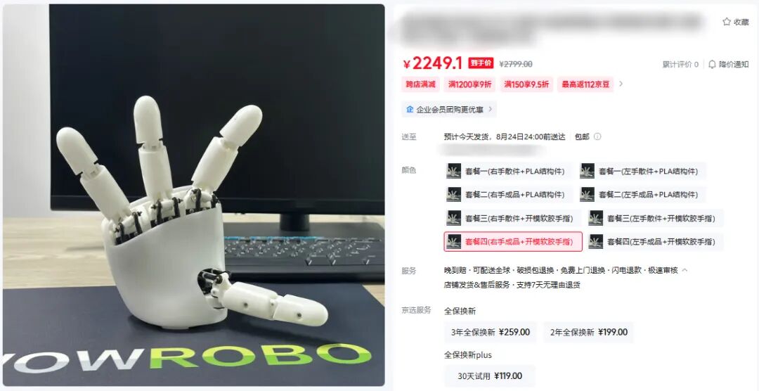 我們翻了翻購物平台,發現大部分機械手集中在幾千到幾萬的價位,最便宜的可能只要遊戲裏兩三發 648,最貴的能把小米 SU7 帶回家。
