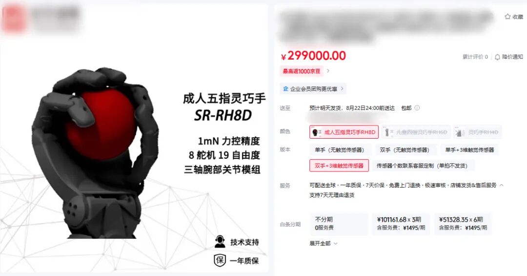 而在和王老師聊天的過程中,我們發現**在不同需求場景下,定價差異確實很大。**比如在純科研中,一隻手七八十萬也是很常見的。