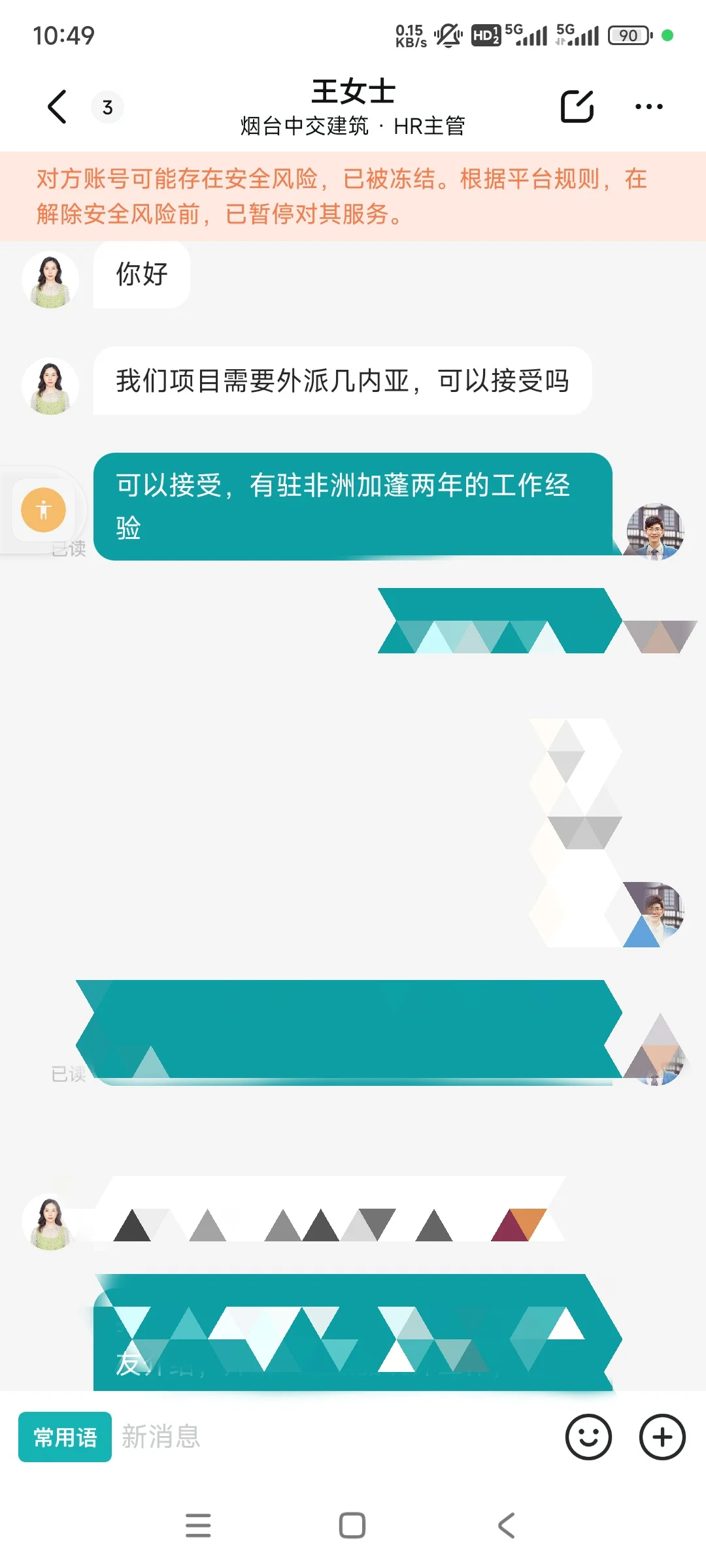 有同學在正規的招聘平台上找到的外派工作,聊了沒幾句就提到了入職押金,剛掛了電話,就接到了反詐中心打來的詐騙提醒。