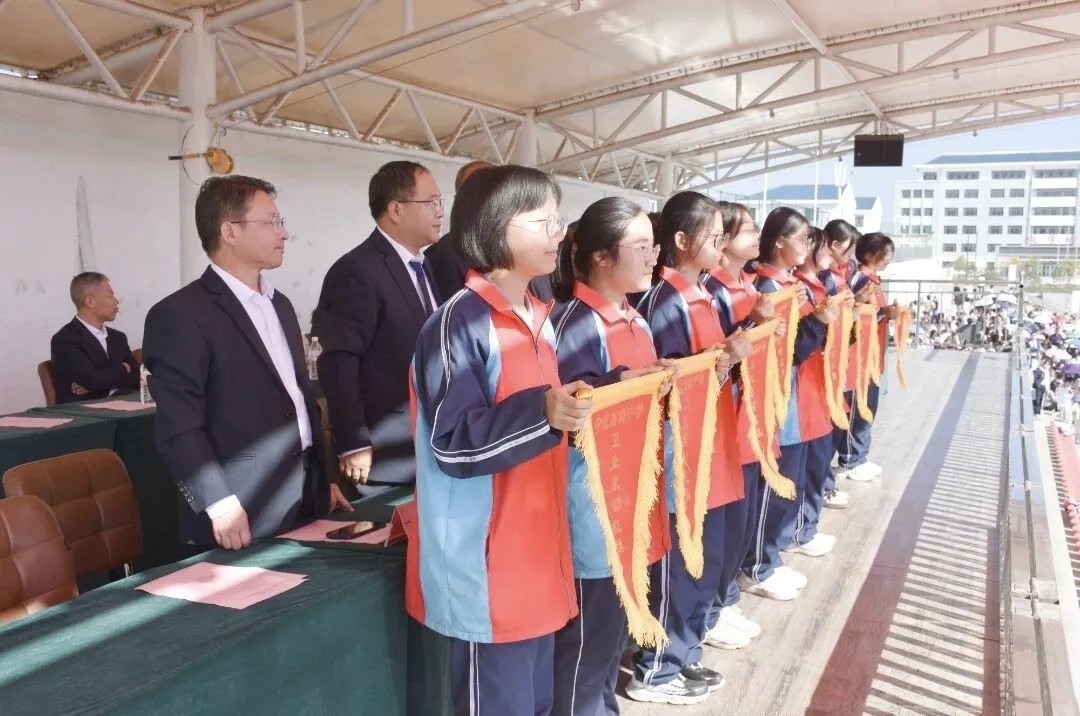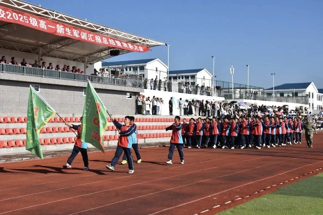 賈根福充分肯定了全體同學在為期十天的軍訓中所展現出的頑強意志、嚴明紀律和昂揚風貌,並向承訓官兵、班主任及工作人員致以誠摯感謝。並寄語同學們把嚴明的紀律延續下去,做遵規守紀的寧高人;把集體榮譽感植入靈魂,做齊心協力的寧高人;要勇於擔當,勤學上進,做初心不改的寧高人。他還從“三學”和“三生”方面與2025級新生分享了學習的意義,激勵他們努力學習,增長知識,錘鍊本領,繪就成長新藍圖。