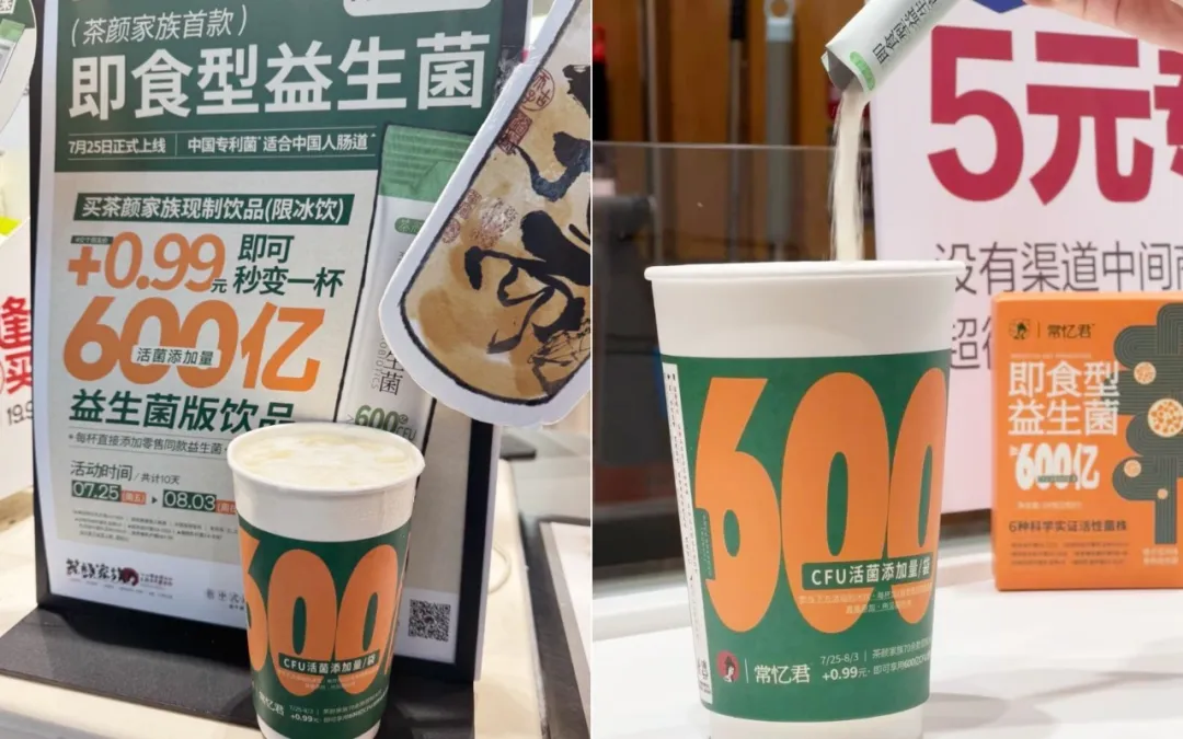 茶顏悦色甚至推出即食益生菌條,除單獨零售外,還可為冰飲注入“600億活菌buff”。