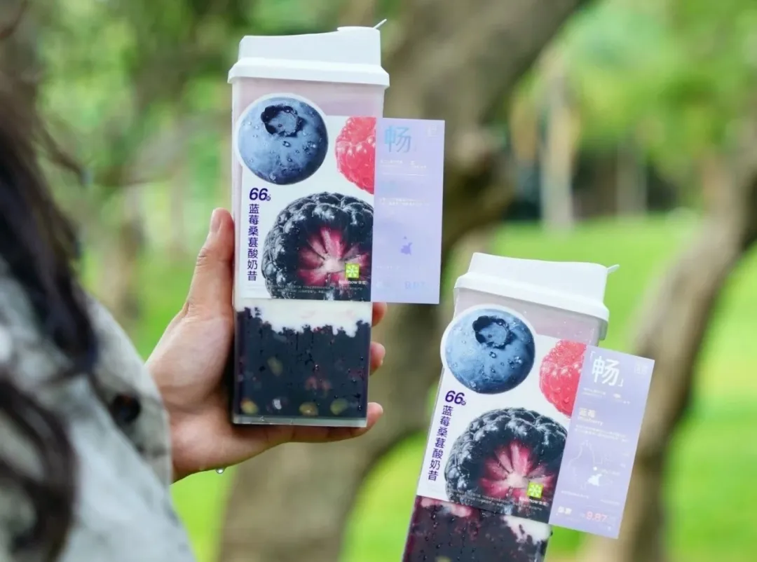 以“66顆藍莓桑葚酸奶昔”為例,據介紹,酸奶基底添加10種活性菌羣,每100g活菌數量達1000億+CFU。上市3天,銷量突破50萬杯,迅速成品牌爆款。