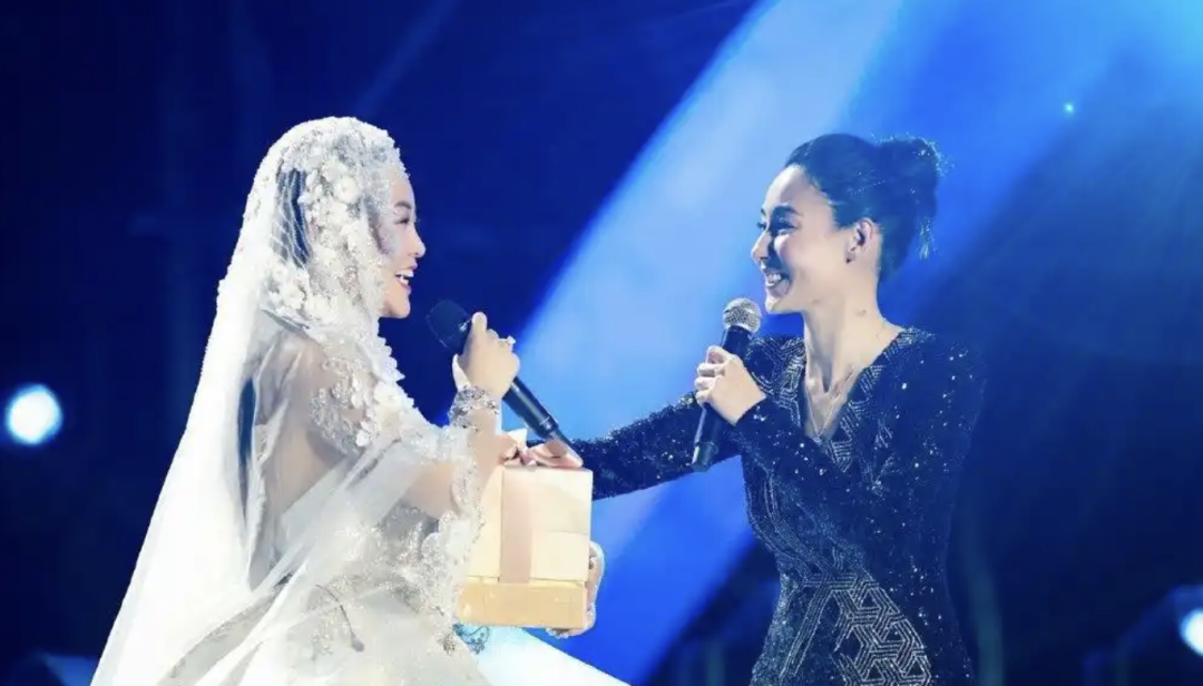 現場陣容堪比大型演唱會,張柏芝還親自為新娘送上禮物。