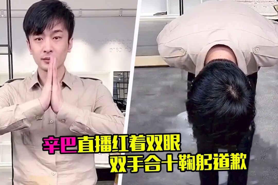 8月18日退網直播結束前,辛巴對着鏡頭深深鞠了一躬。