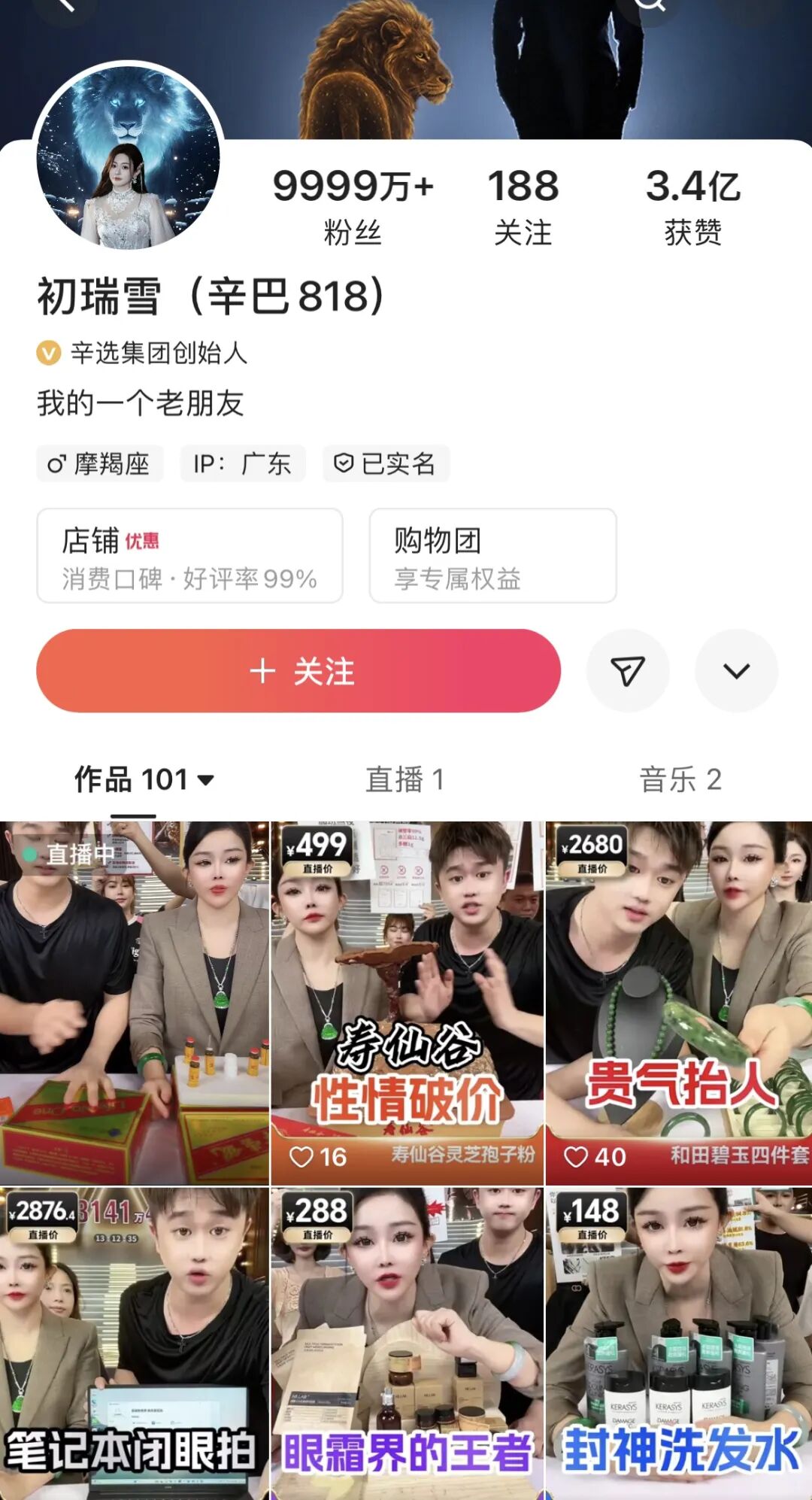 如今辛巴將管理權交給妻子初瑞雪,她的首場直播4小時不到,銷售額達10億元。