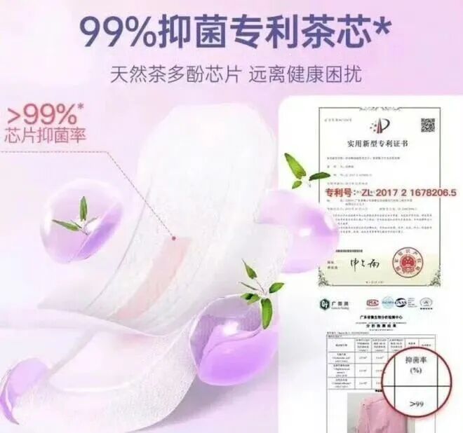 棉密碼櫻花·舒緩型衞生巾宣傳的“天然茶多酚芯片”含有超高含量硫脲