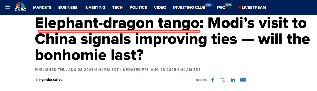 兩家媒體都特意交代一句:龍與象分別象徵中印兩國。作為媒體,這兩句交代很重要。面向英文大眾的國際傳播,千萬不要把讀者想象成上知天文、下知地理的“活百科”。在歐美國家做個街採,不知道印度首都在哪兒的人比比皆是,“龍象”隱喻也並非翻譯完就人人都能秒懂。