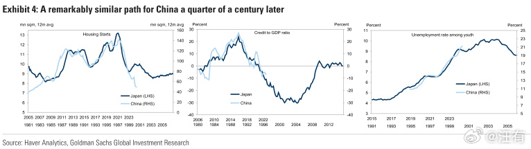 2023年9月,高盛發佈了報告:中國的日本化風險China´s risk of Japanification以當年日本房價下跌的走勢來看看中國本輪下行啥時候走出來。