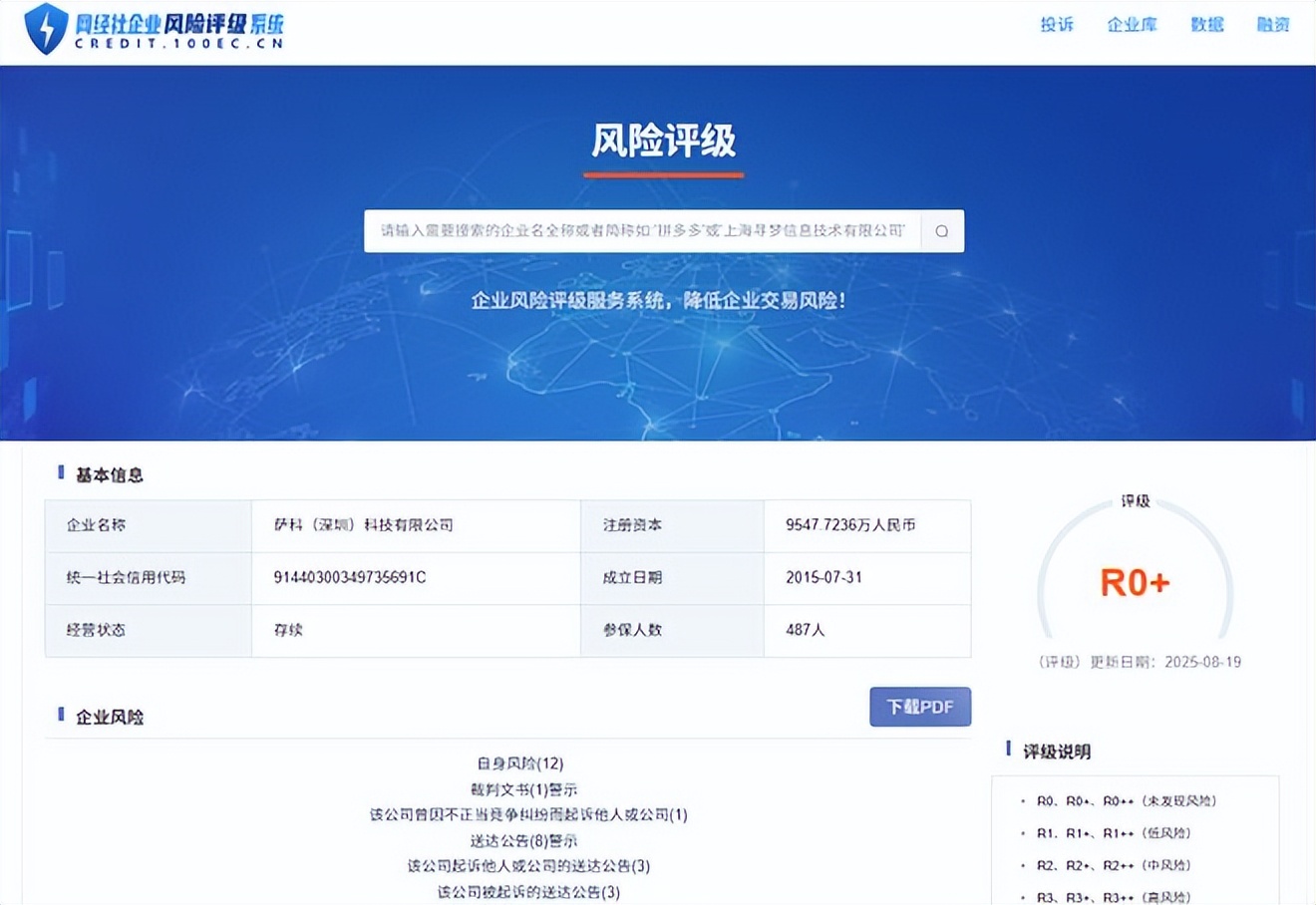 據“網經社企業風險評級系統”顯示,魯班到家所屬薩科(深圳)科技有限公司的風險評級為R0+,公司目前所處未發現風險。
