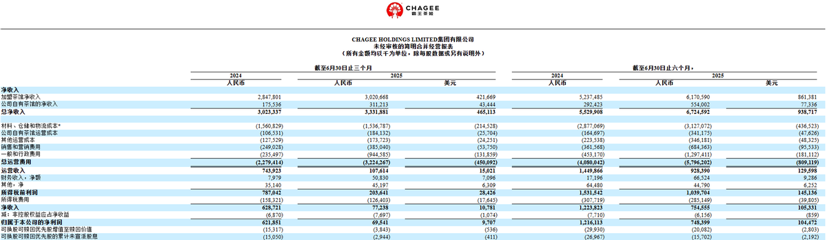 上半年,霸王茶姬實現營業收入67.25億元,同比增長21.61%;但淨利潤只有7.55億元,同比降幅高達38.22%;經調整淨利潤為13.07億元,同比增長了6.78%。其中,今年第二季度,其收入為33.32億元,同比增長10.2%;淨利潤為7723.8萬元,同比下滑87.72%,經調整淨利潤為6.30億元,同比微增0.1%。