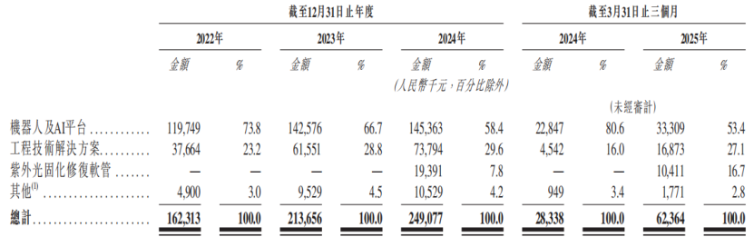 2022年至2024年,公司來自銷售機器人及AI平台的收入佔比由73.8%降至58.4%,而來自提供工程技術解決方案的收入佔比則由23.2%增至29.6%。