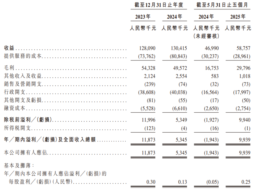 具體來看,2023年、2024年及2025年前五個月,卓優智美的營業收入分別約1.28億元、1.30億元、0.59億元,毛利率分別約42.4%、38.0%、50.7%,對應的淨利潤分別約1187.3萬元、534.5萬元、993.9萬元。
