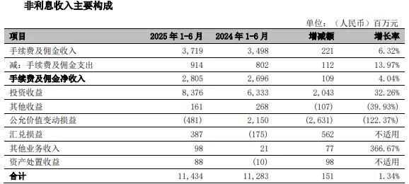 另一方面,寧波銀行非利息收入板塊亦展現出穩健韌性,上半年收入114.34億元,同比增長1.34%。