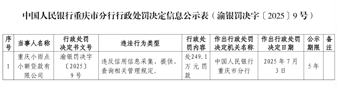 比如上半年中國人民銀行重慶市分行針對兩家小貸機構的處罰,原因依舊是違反信用信息採集、提供、查詢相關管理規定。