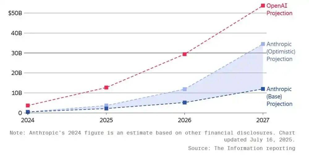 科技媒體The Information甚至專門展示了數據庫中的一頁,顯示僅以OpenAI、Anthropic為代表的16家AI原生公司為例,合併年化收入就已經超過了185億美元。