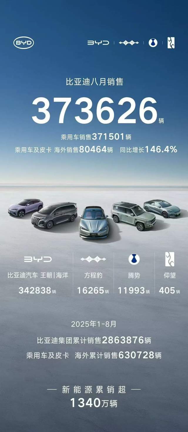 比亞迪8月銷量公佈,37.36萬輛繼續保持增長率,海外市場也是亮點_風聞