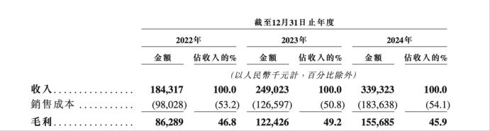 財務方面,仙工智能近年業績呈現增長態勢。招股書數據顯示,仙工智能在2022年、2023年、2024年營收分別為1.84億元、2.49億元、3.39億元,2022年至2024年的複合年增長率為35.7%;毛利分別為8628.9萬元、1.22億元、1.56億元;毛利率分別為46.8%、49.2%、45.9%。