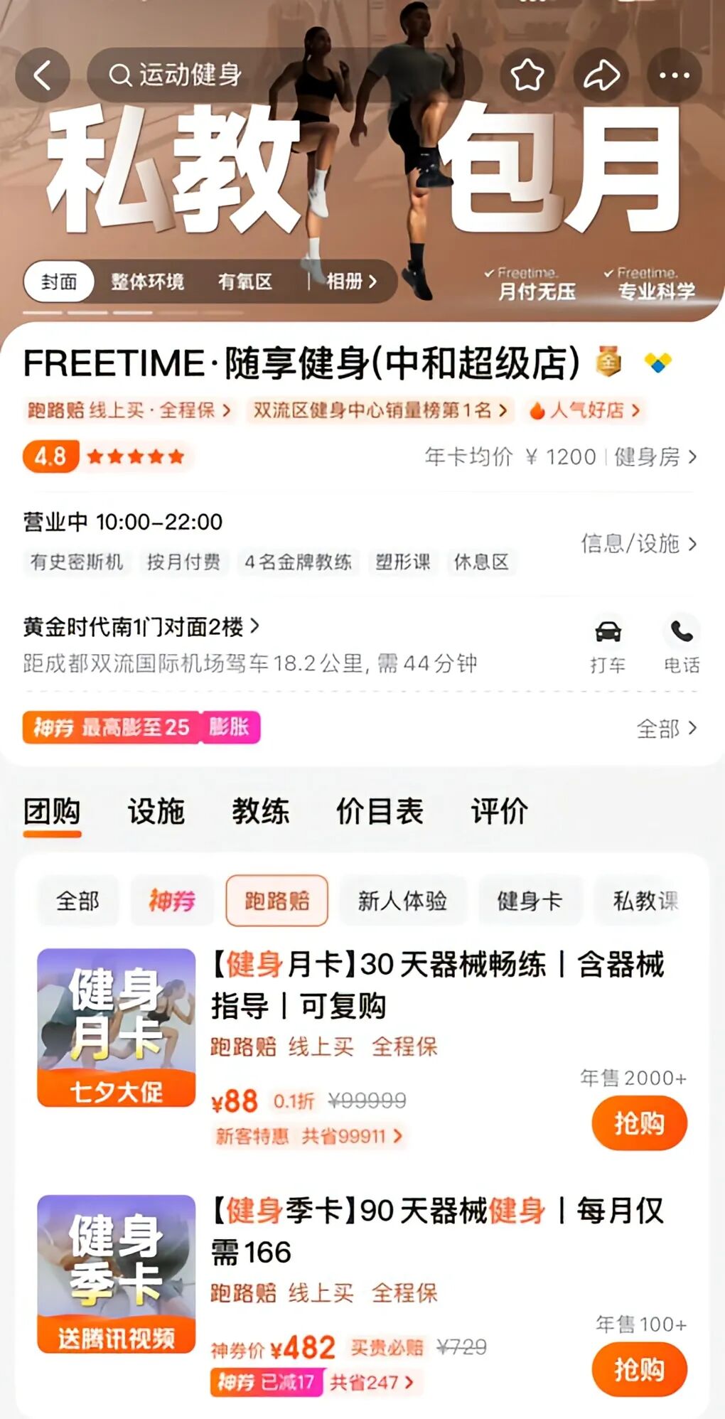 做出改變的還有咱們説過的成都本土健身房FREETIME隨享健身,與“跑路賠”模式不謀而合,砍掉了傳統銷售線下拉客大大節省人力成本,幾乎實現100%線上化,基本全是次卡、周卡、月卡短平快產品,沒有年卡,私教也是月付,大家下單更爽快,消費者也更願意低成本嘗試,點擊率輕輕鬆鬆就上漲了30%。