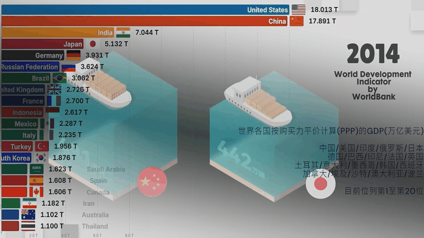 如果按估計實際經濟產出的「購買力平價」方式計算,按國際貨幣基金會的評估,中國實際經濟體量早在2014年已經超越了美國。