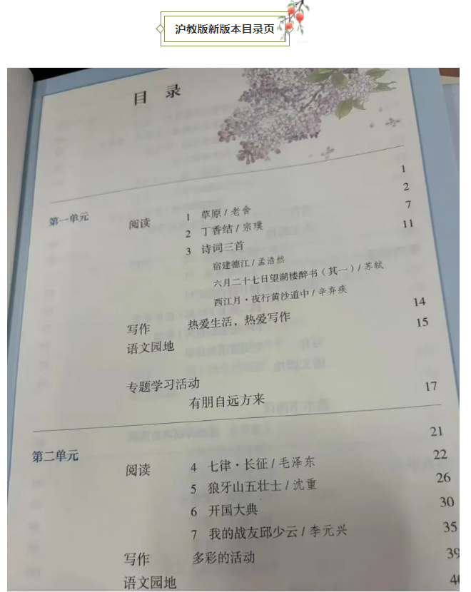 但我看了其它版本六年級語文教材,《少年閏土》還是在的嘛。而且仔細看了,似乎這個版本語文教材,紅色革命題材內容也不像滬教版那麼多呀。就只集中在第二單元5篇。