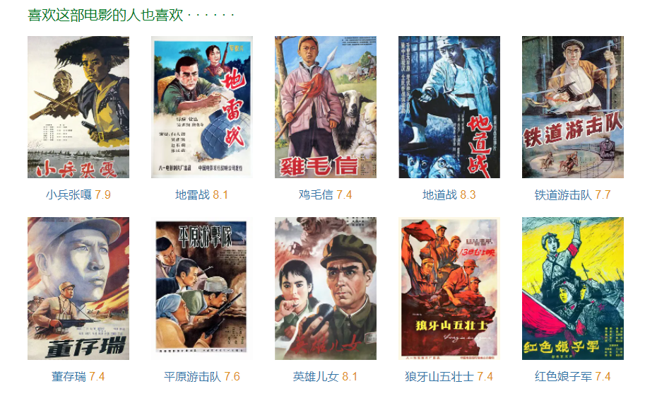 比如紅色革命歷史題材電影,我們80後小時候,天天看各種主旋律老電影,像《閃閃的紅星》啊,《地道戰》,《地雷戰》這些,小時候看得津津有味
