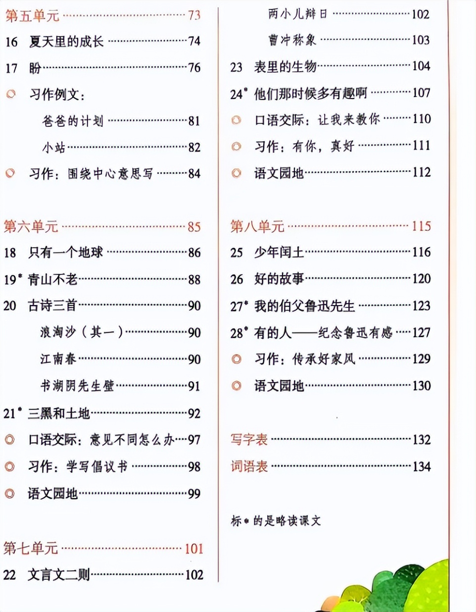 但我看了其它版本六年級語文教材,《少年閏土》還是在的嘛。而且仔細看了,似乎這個版本語文教材,紅色革命題材內容也不像滬教版那麼多呀。就只集中在第二單元5篇。