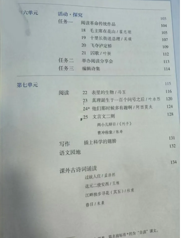看完六年級語文課本目錄,我感覺革命歷史內容太多了點_風聞