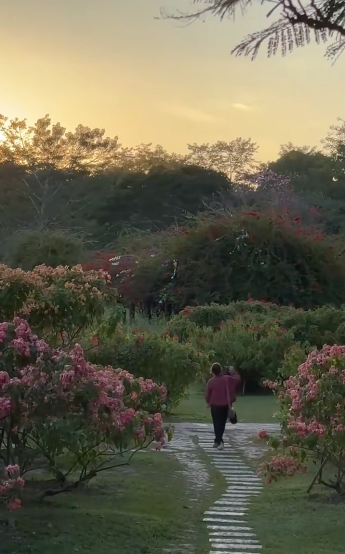 她到達西雙版納時,第一感受是真的很温暖,是和北方截然不同的冬天。她看到道路兩旁鬱鬱葱葱的樹,隨處都開着鮮豔的花。她喜歡這種充滿生機五彩繽紛的感覺。
