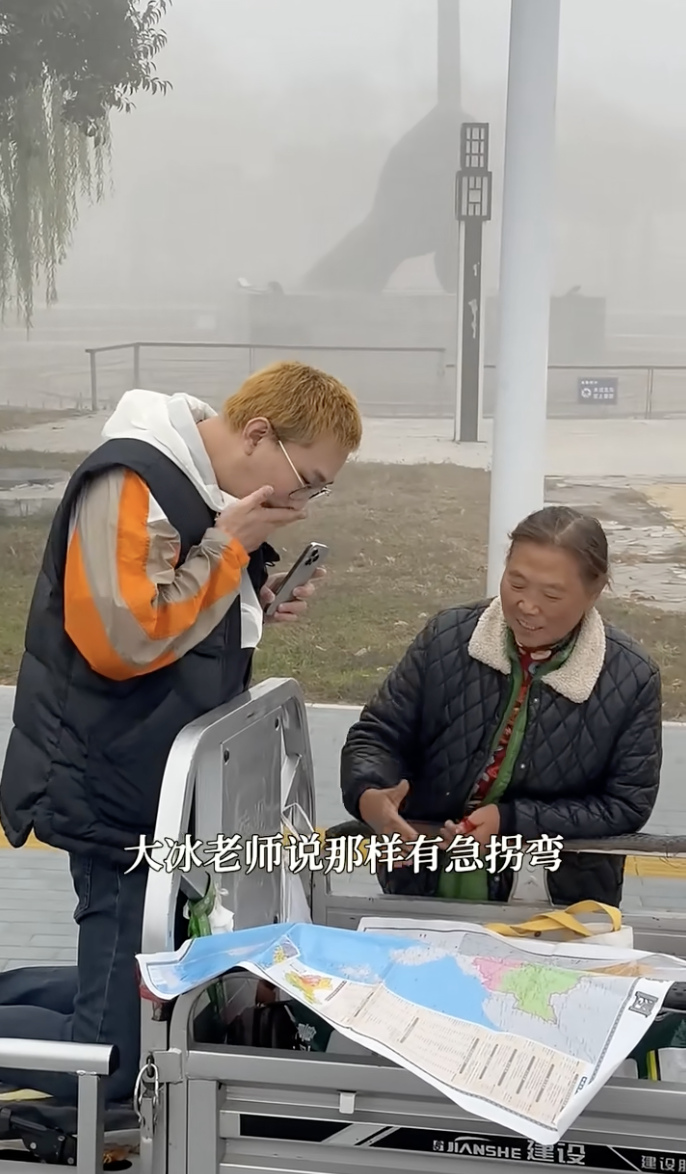 大冰跟她講三輪車上不了高速,只能走國道,去西雙版納有很多盤山道,而且一路上晝夜温差也大,又建議她“我告訴您兩個特別好玩的地方,機票不貴,去到當地就坐公共交通工具,成都和重慶。去看大熊貓挺好,12月之前不會特別冷。”