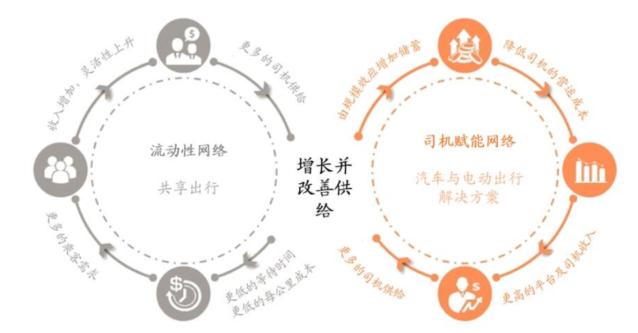 需求端,滴滴通過多元業務覆蓋構建了一站式出行平台,形成“用户越多—司機越多—體驗越好”的正向循環。