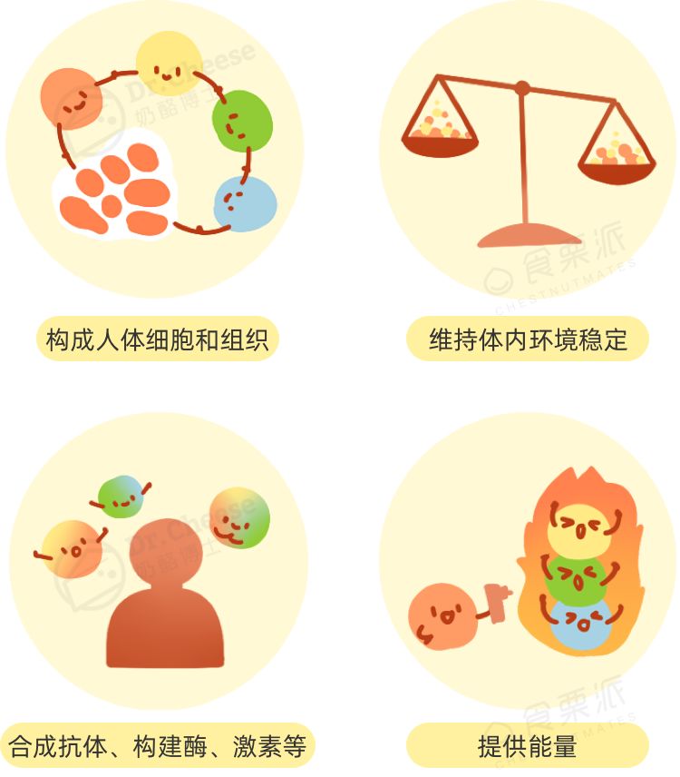 蛋白質是咱們每個人都離不開的“萬能磚頭”——它不光用來“砌肌肉”,還負責修補身體的破損零件(比如傷口癒合)、搬運營養物質、製造抗體幫你抵禦疾病、還參與保持骨骼強壯。可以説,沒有蛋白質,就沒有生命