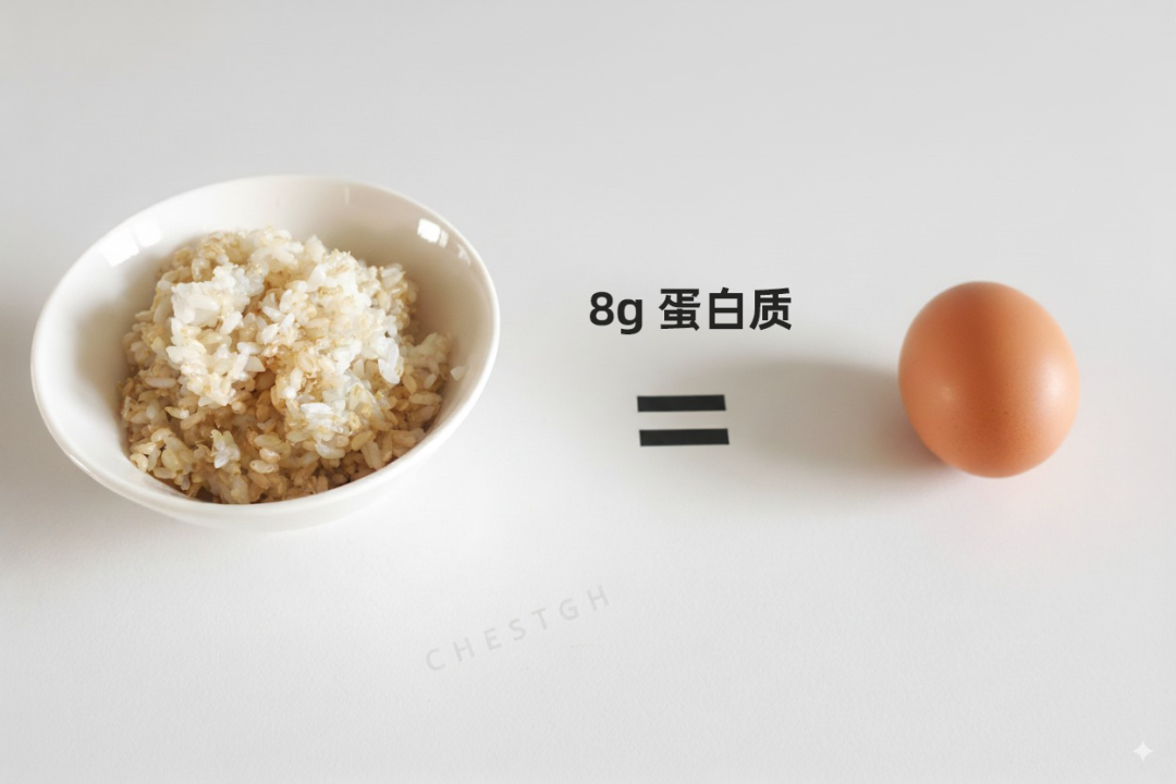 比如二兩米飯,大約可以提供大約8g蛋白質,跟一個特大號雞蛋提供的蛋白質差不多。