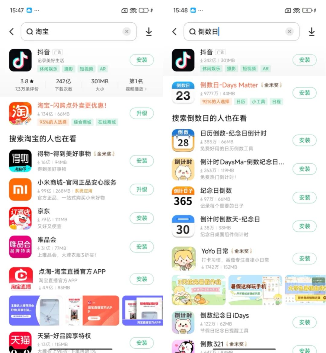 搜索排名前幾的應用裏,有不少 app 是足夠以假亂真的 “李鬼”。用户想找到自己真正想下載的 app,有時候要往下翻幾頁才能找到。不仔細看應用的下載量分辨一下,還真就有可能順手用上盜版的 app 了。