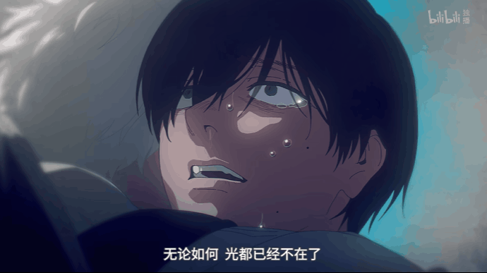而當我們看到漫畫中的名場面——“光”顯露出真身時,動畫師平岡政展借鑑水墨畫中的“飛白”技法,塑造出一種有生命的流體從皮膚表層慢慢滲出的感覺,將原本漫畫震撼詭譎的視覺表達進一步放大。