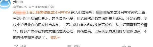 還有網友則提出疑問:「如果只是把水裝進噴霧瓶裏,為什麼要賣到上百元?」 有些集美更是直接破防:「天吶,好沒良心」「噴霧成分只有水,哈哈哈……」