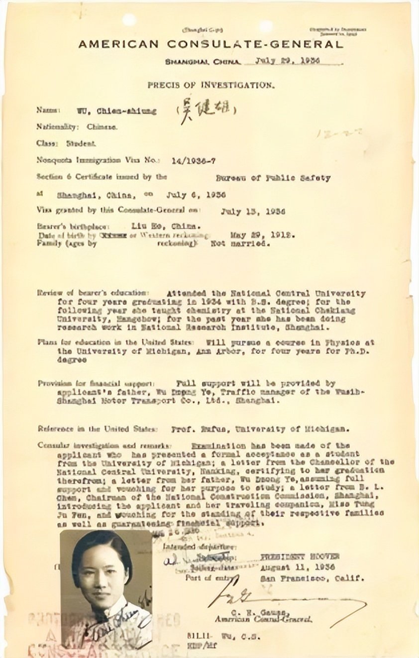 美國駐上海總領館有關吳健雄的簽證資料 | 圖源:美國國家檔案館