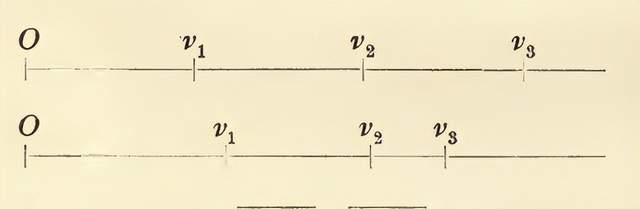 龐加萊對牛頓力學(上面線段)和新力學(下面線段)中的速度疊加的對比分析示意圖(摘自原書第52頁)。
