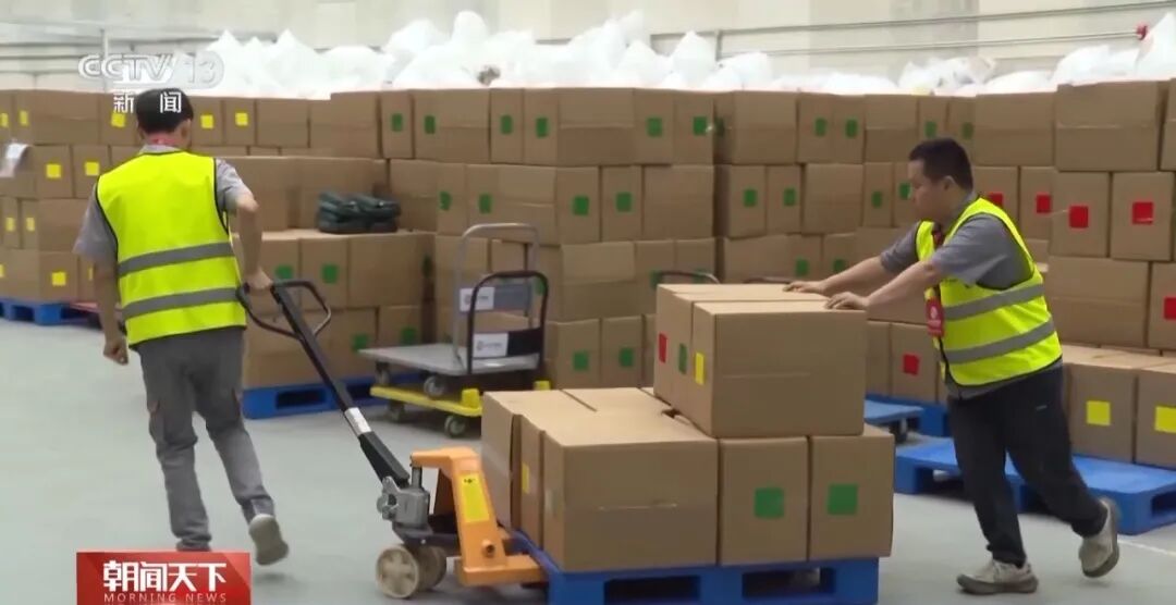 **總枱記者 王勝東:**在觀禮人員服務包的存儲倉庫,這些服務包已經被裝載完畢,靜待發車。先來了解一下服務包的外部設計特點和使用功能。它上面有一個小口袋,可以裝風油精和紙巾,下面還有一個小口袋,可以裝揹包袋,旁邊的網兜,可以裝水瓶或者水壺。它能夠基本滿足廣場上觀禮羣眾當天的保障需求,而這三個小口袋就構成了“80”字樣,契合今年抗戰勝利80週年的主題。服務包一共劃分為三個顏色,分別是城牆紅、豐饒金和橄欖綠,它們與廣場上座椅的顏色是一一對應的,也就是説您在廣場上處於不同的觀禮位置,就會得到不同顏色的服務包。