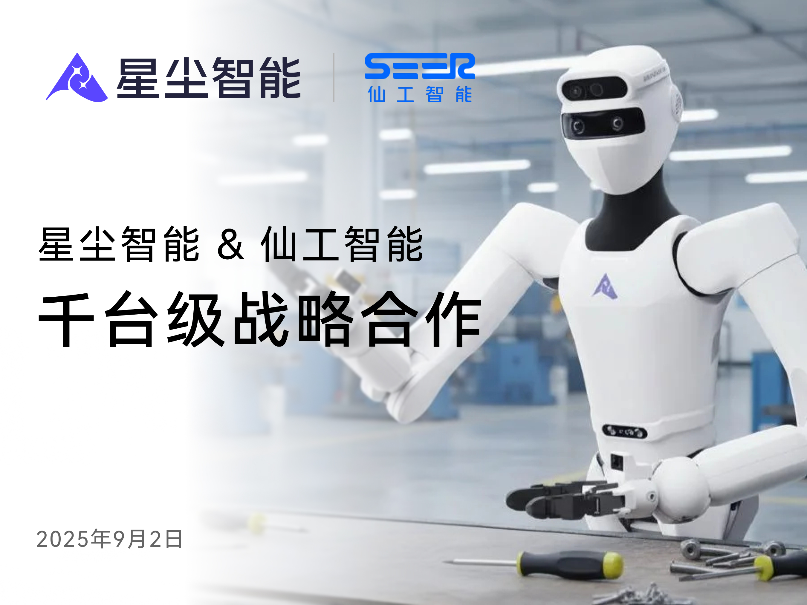 9月2日深圳 - 星塵智能(深圳)有限公司(以下簡稱“星塵智能”)宣佈與上海仙工智能科技股份有限公司(以下簡稱“仙工智能”)達成人形機器人千台級訂單戰略合作,在未來兩年內推動上千台AI機器人在工業、製造、倉儲、物流等場景大規模、分階段部署。這一合作標誌着AI機器人進入“工業智能體”的應用新階段,為具身智能技術的商業化打造範本,更是推動“新質生產力”的重要實踐。