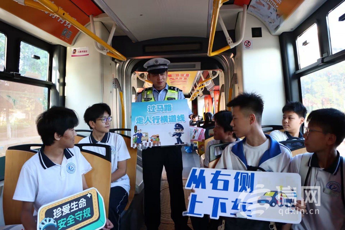 城陽區大隊將交通安全課堂“搬”進了有軌電車示範線。民警在車廂內圍繞安全乘車、文明出行等主題,開展了生動有趣的“開學第一課”宣講活動。通過互動問答、案例講解等形式,讓同學們在沉浸式體驗中掌握了交通安全知識,為新學期平安出行築牢第一道防線。