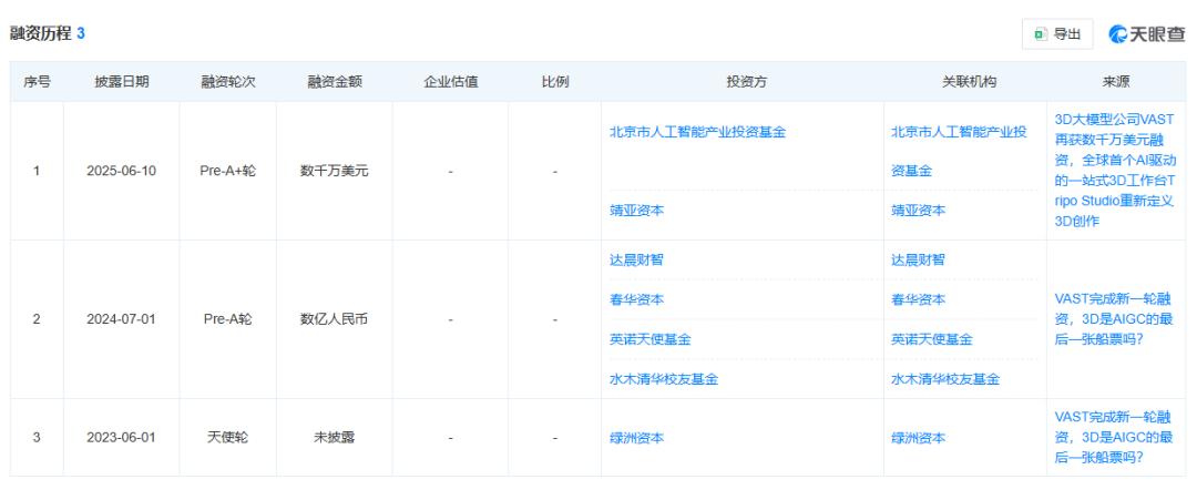 △ 據天眼查數據顯示,VAST已成功獲得三輪融資