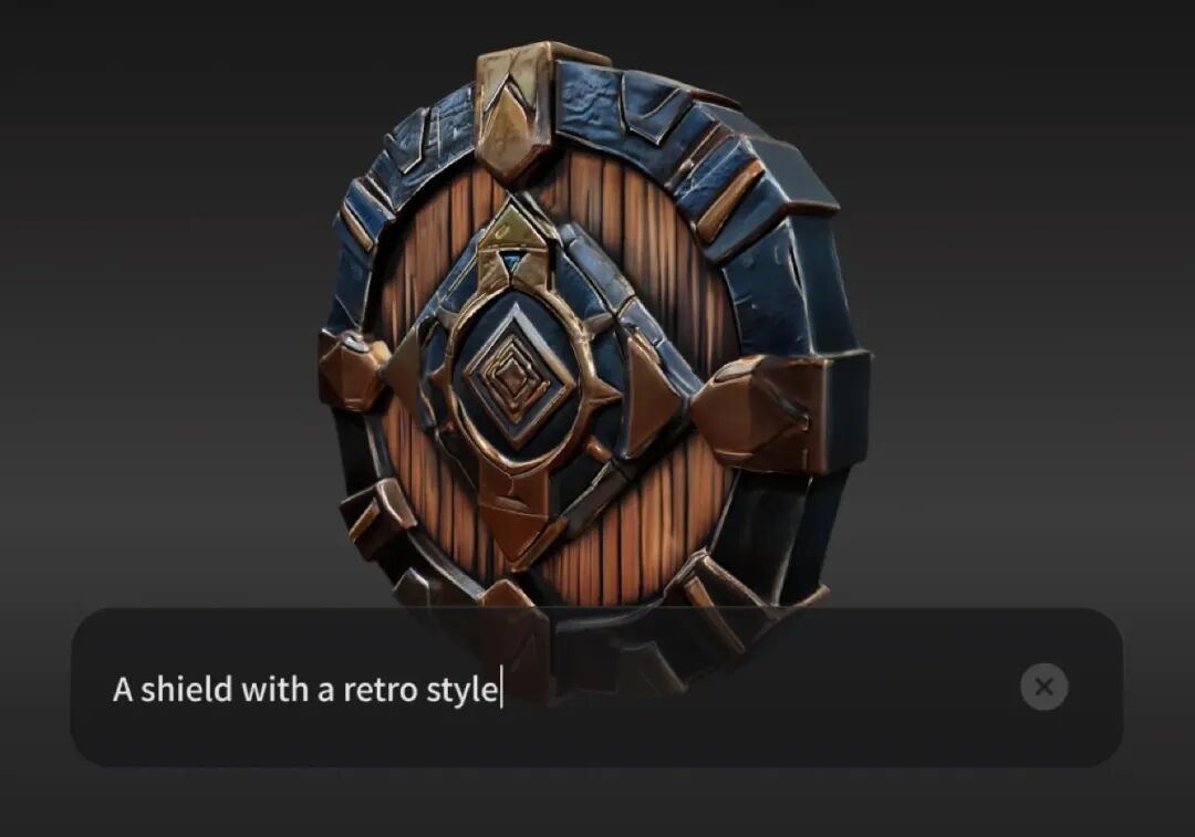 △ 向Tripo 3.0輸入文本“復古風格的盾牌”秒級生成3D模型