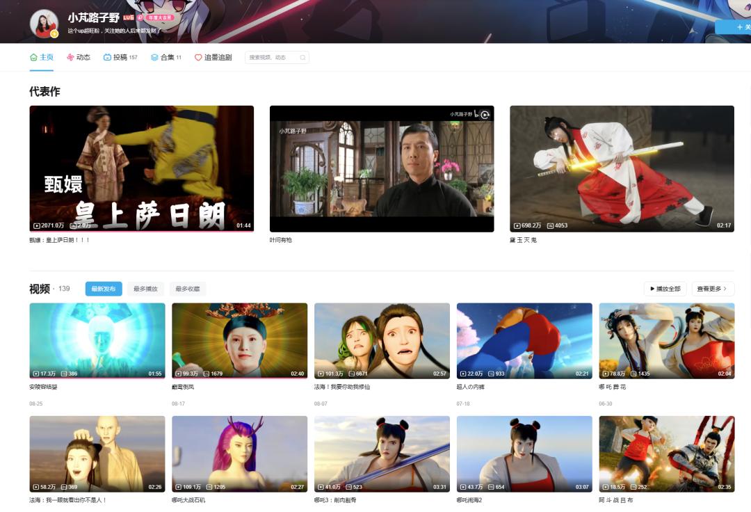 △ B站UP主“小芃路子野”作品最高播放量超2000萬